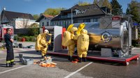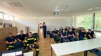 Im Anschluss folgte der praktische Teil der Ausbildung. Dabei standen unter anderem die Vorstellung des Gefahrstofffahrzeuges sowie des Atemschutzfahrzeuges im Mittelpunkt. Zudem wurde ein Dekontaminationsplatz aufgebaut und betrieben, um die Abläufe im Ernstfall realitätsnah zu trainieren.